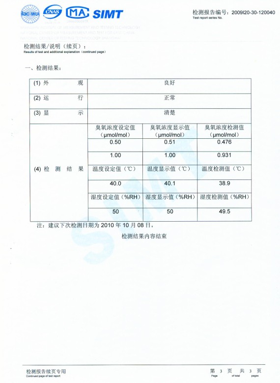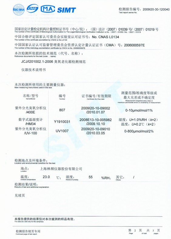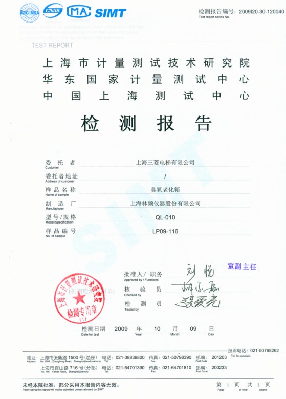 林頻股份與三菱電梯關于臭氧老化試驗箱校準報告