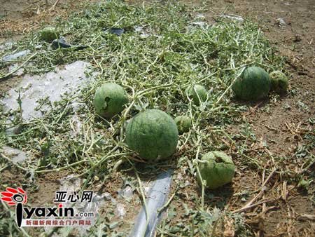 記者從沙灣縣農業局了解到,沙北區種植的農作物大多是經濟作物,以棉花、打瓜為主。“被冰雹打落的棉花枝葉成片地散落在地里,甚至還有大面積的棉花桿被打斷,而在打瓜田里,剛剛結出的小打瓜被冰雹砸碎,一些稍大點的打瓜表面布滿了小孔。”農業局工作人員告訴記者,玉米地里已長至一米多高的玉米桿也被大風吹斷,沒有被吹倒的玉米葉子都已成了碎條狀。
